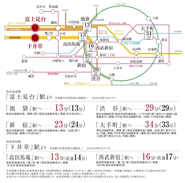 西武池袋線「富士見台」駅と西武新宿線「下井草」駅の2駅2路線利用可能な立地です。