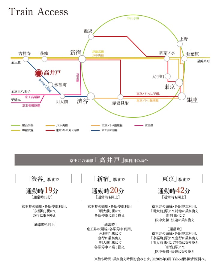 京王井の頭線「高井戸」駅利用で「渋谷」駅まで乗車19分、「新宿」駅までは乗車20分のアクセスが可能。 通勤・通学や休日のお出かけも快適です。