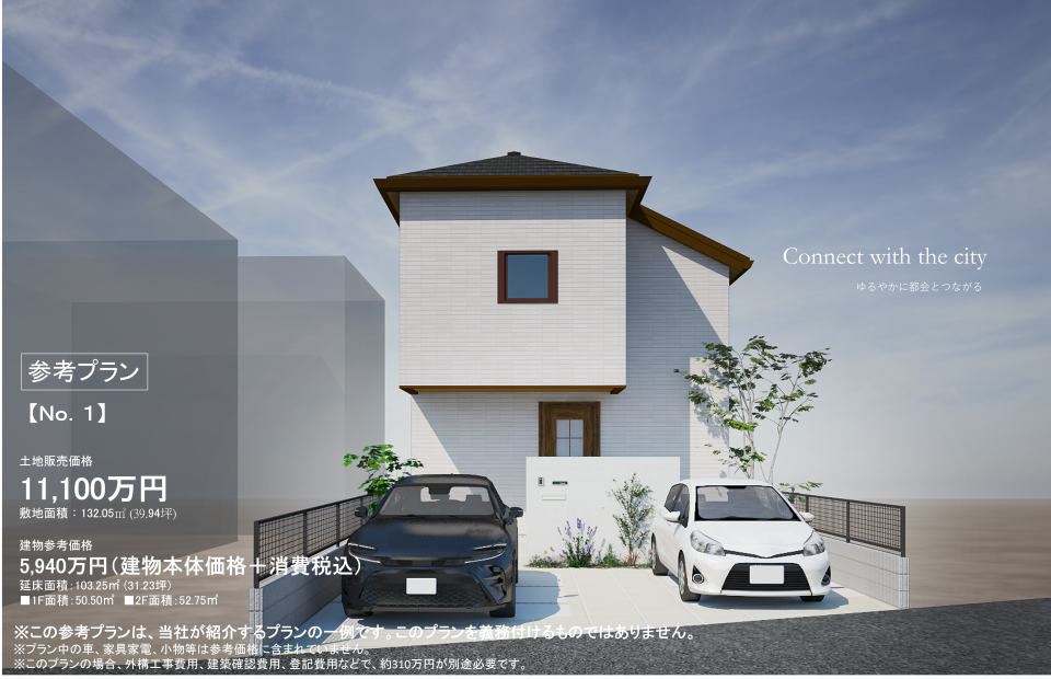 建物参考価格(No.1区画)5,940万円(建物本体価格+消費税込)