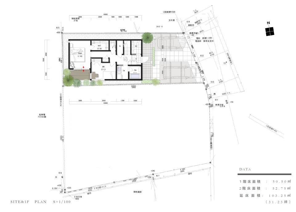 ※駐車スペースを2台分確保した参考プランですが、プランや車種により2台分の確保が難しい場合がございます。