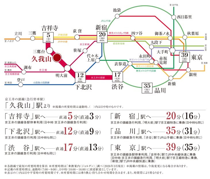京王井の頭線急行停車駅「久我山」駅利用で、「渋谷」駅や「吉祥寺」駅へ乗り換えなしのアクセスが可能です。