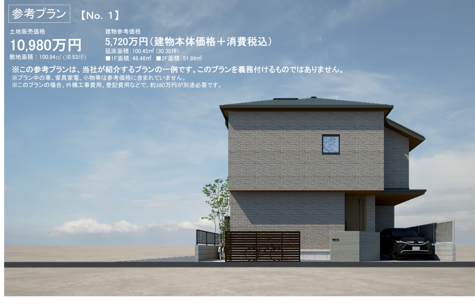建物参考価格(No.1区画)5,720万円(建物本体価格+消費税込)