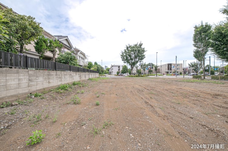 第一種低層住居専用地域に位置する分譲地。分譲地南側は、潤い溢れる並木が美しい境南通りに面しています。風情ある緑のトンネルが日常の景色になる、心安らぐ住環境です。/2024年7月撮影※契約済区画含む