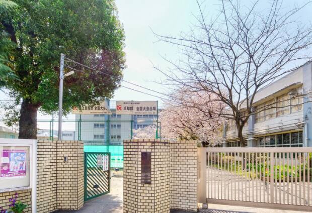 四季の花が彩る環境で、1「思いやりと助け合う心をもとう」 2 「自ら学ぶ人になろう」 3 「心と体を鍛えよう」を柱として、学習や行事、委員会や係の活動、部活動などに取り組んでいる中学校。