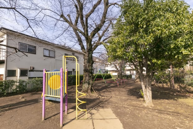 遊具やベンチが設置された緑豊かな公園です。自然と触れ合いながら遊ぶことができます。お買い物帰りなどにお子様と気軽に立ち寄れます。