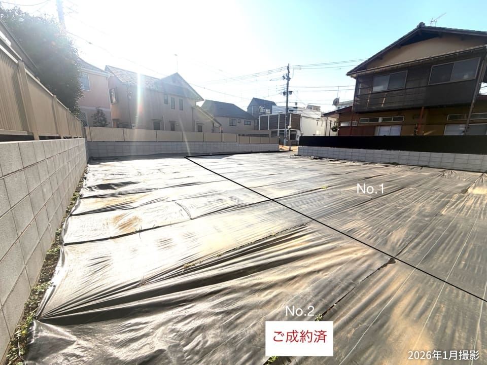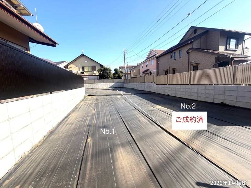 【現地北側から南側を見た写真】第一種低層住居専用地域である当分譲地は南側が抜けており、開放的なプランを提案させていただきます。(2026年1月撮影)