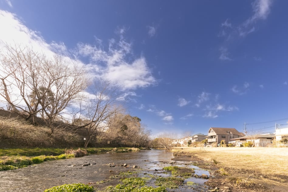 - 落合川の水辺で、いつでも気軽にリフレッシュ。水の流れと豊かな緑を感じながら、心地よいオフタイムを過ごせます。