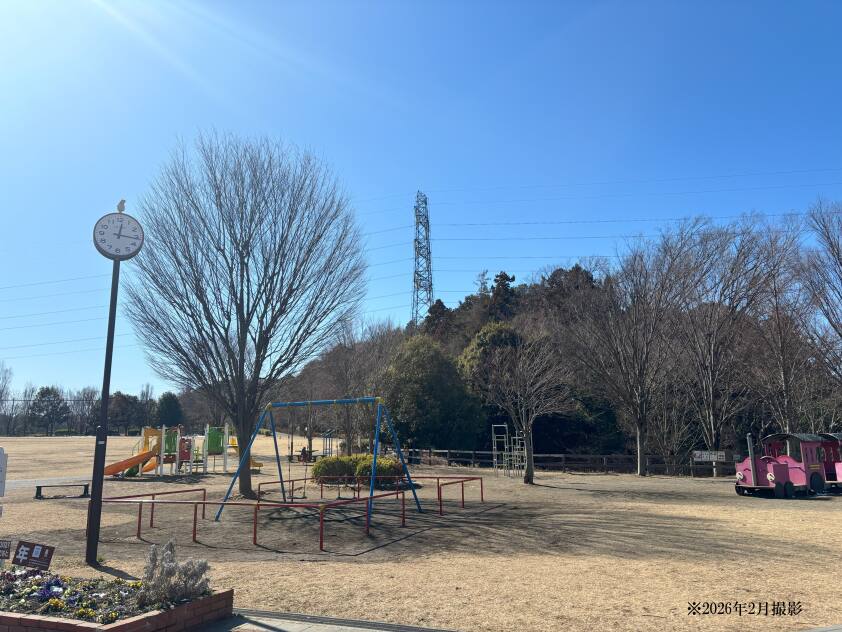 屋内アスレチック施設「こどもログハウス」がある公園です。山のすそ野には小川と「カエデとシランの小径」があり、散策を楽しむことも。夏祭りなど各種イベントも開催。