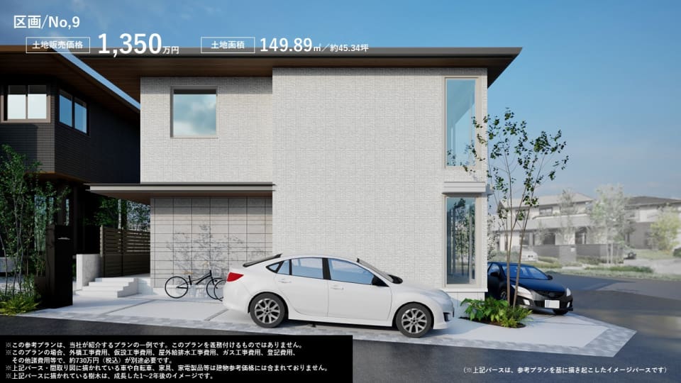 1区画45坪以上のゆとりある敷地に、全13区画の一体感ある積水ハウス仕立ての美しい街並みが実現します。