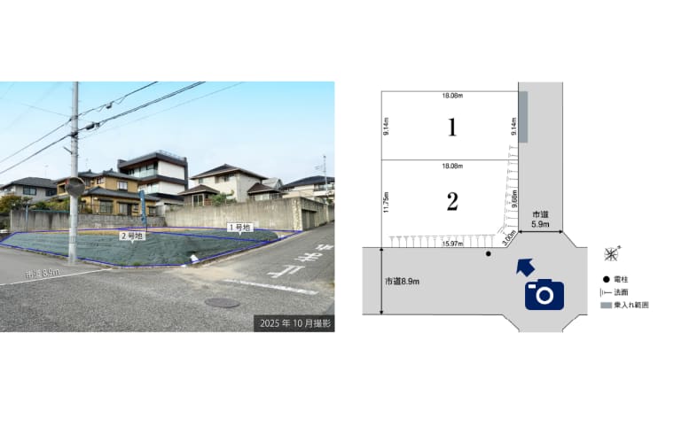 東側が新町公園(現地から6m)の為、南側東側ともに日当たり良好です。
