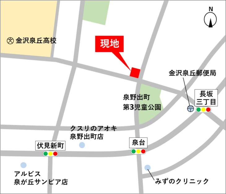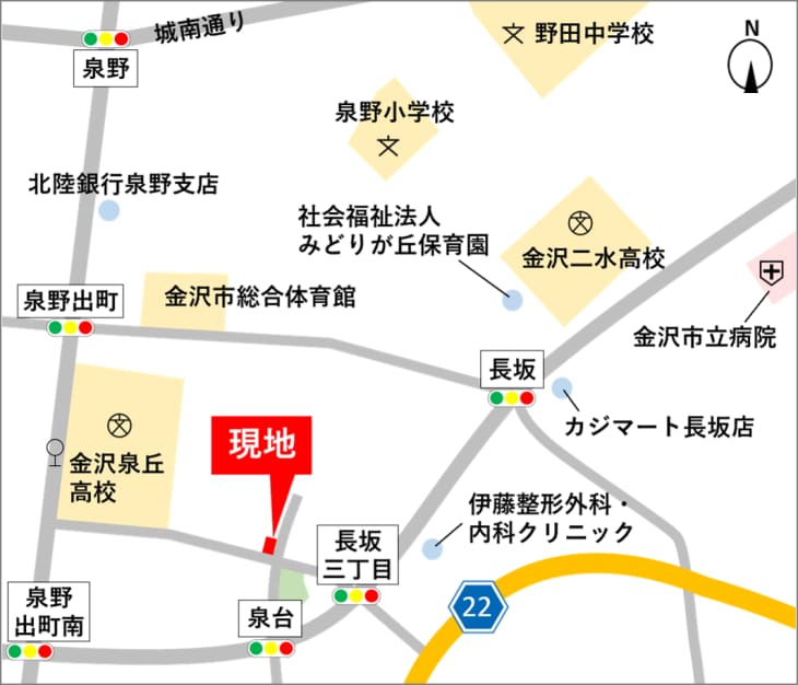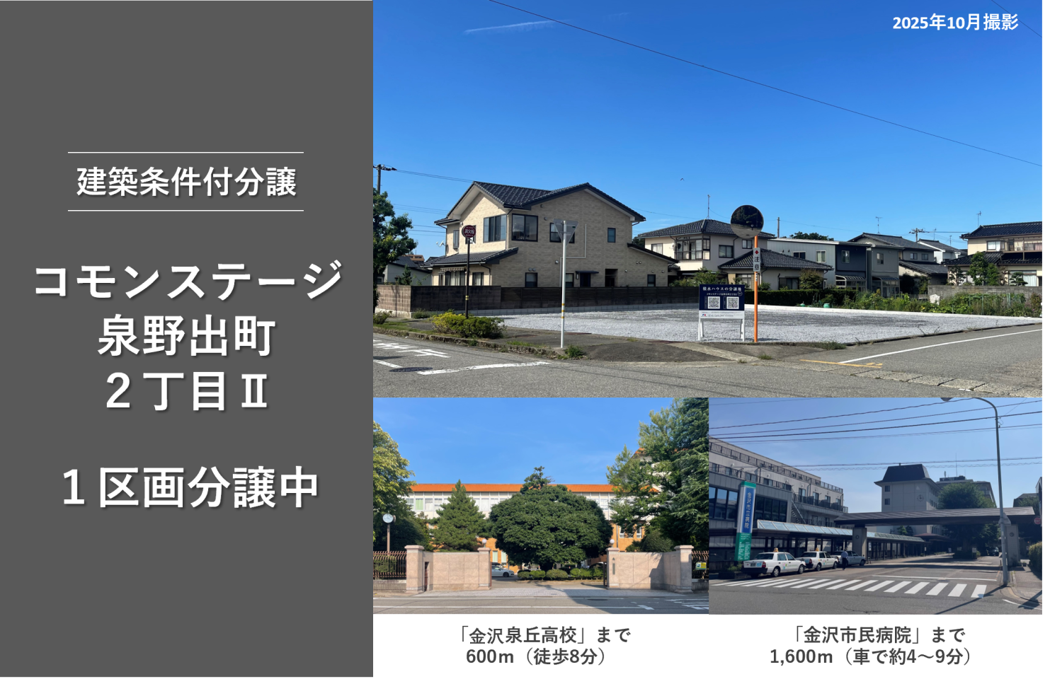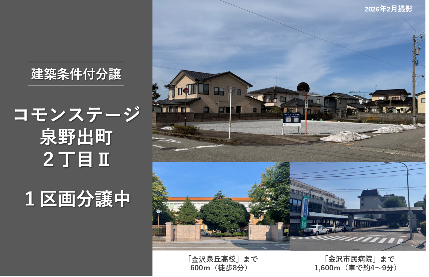 金沢泉丘高校や金沢二水高校等、教育施設が充実した、安心の子育て環境が魅力。 公共機関・病院・商業施設も周辺に揃うエリア。