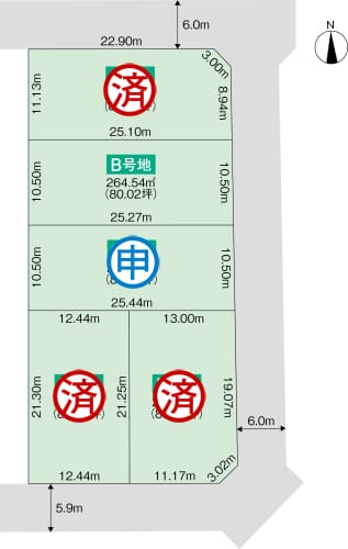 以下の号地は、現在申込が入っております。詳細についてはお問い合わせ願います。