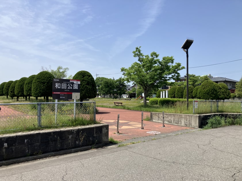 - 和田公園まで徒歩4分(約300m)。美しく整備された芝生が広がる、広々とした公園。滑り台やブランコ、ベンチが設置されています。グラウンドスペースもあり、ボール遊びやペットのお散歩など、のびのびと過ごすことができそうです。