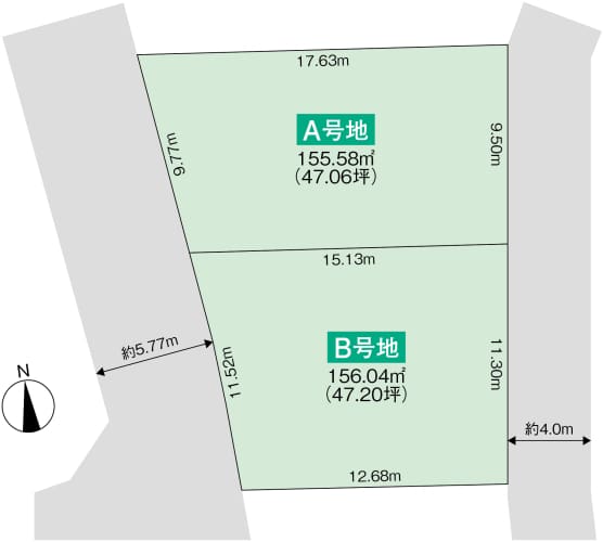 47坪超、東・西の二方向が道路に面している開放的な敷地です。