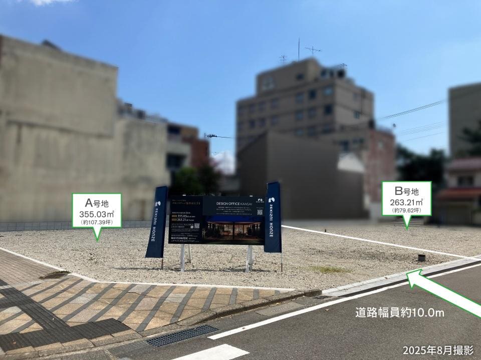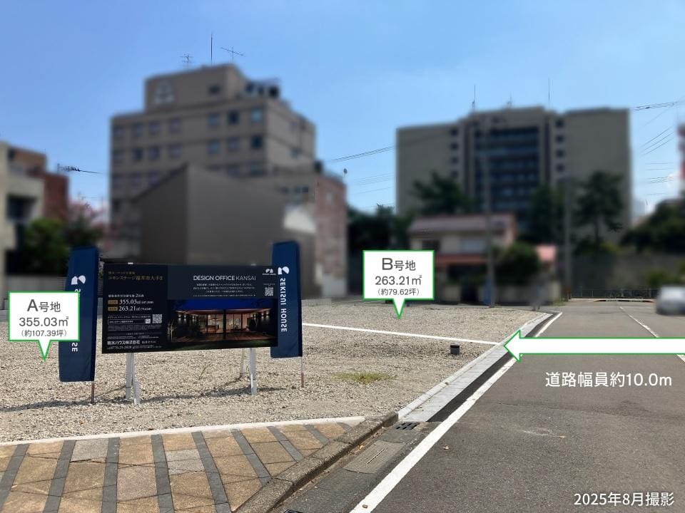 【A号地】敷地面積約107.39坪の広々とした敷地。リビングを南向きに配置したプランもご検討いただけます。ご家族皆様のご希望を、ぜひお聞かせください。/2025年8月撮影