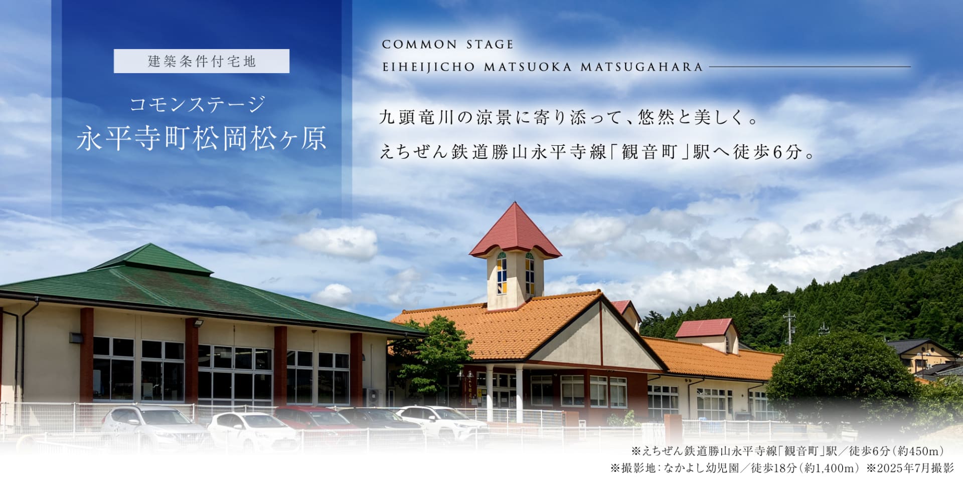 自然豊かな街並みが広がる《永平寺町》。緑深い山々と九頭竜川がもたらす清々しい空気に包まれる、心安らぐ暮らしがここに。