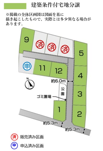 全12区画。商業施設や、教育施設など各方面へアクセスのしやすい分譲地です。