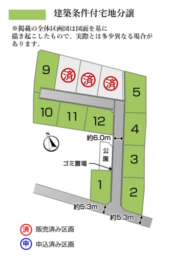 全12区画。商業施設や、教育施設など各方面へアクセスのしやすい分譲地です。