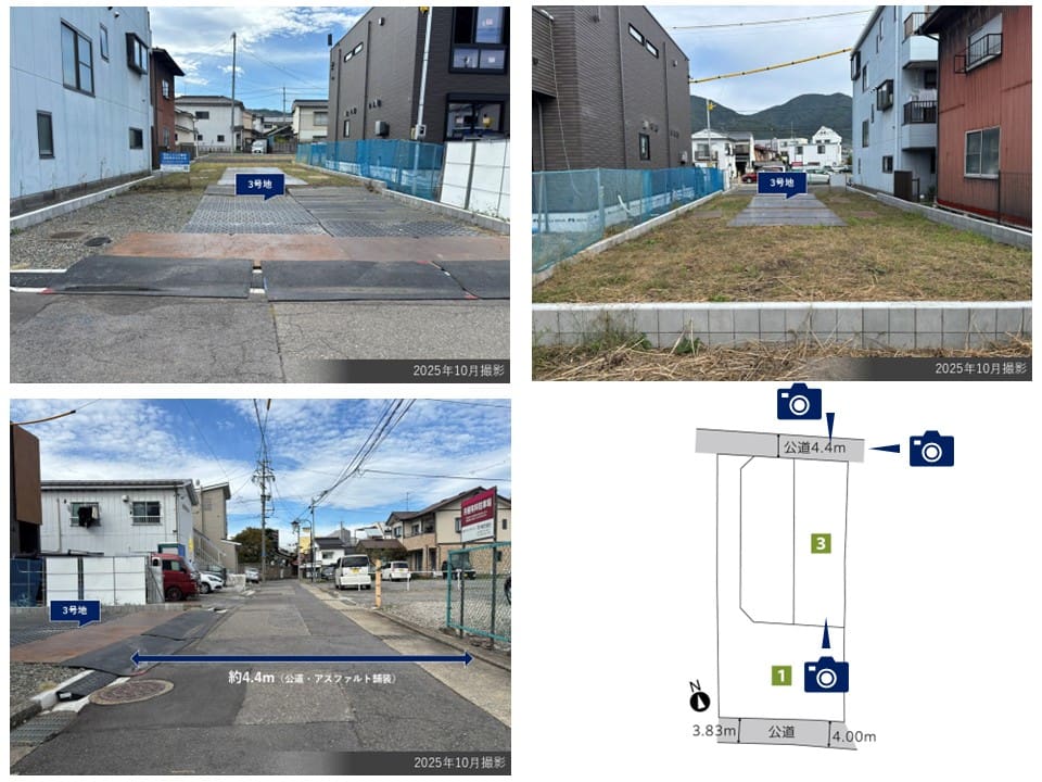 分譲地より東小学校まで徒歩8~9分、ツルヤ上田中央店まで徒歩6分、上田駅まで徒歩11~12分です。
