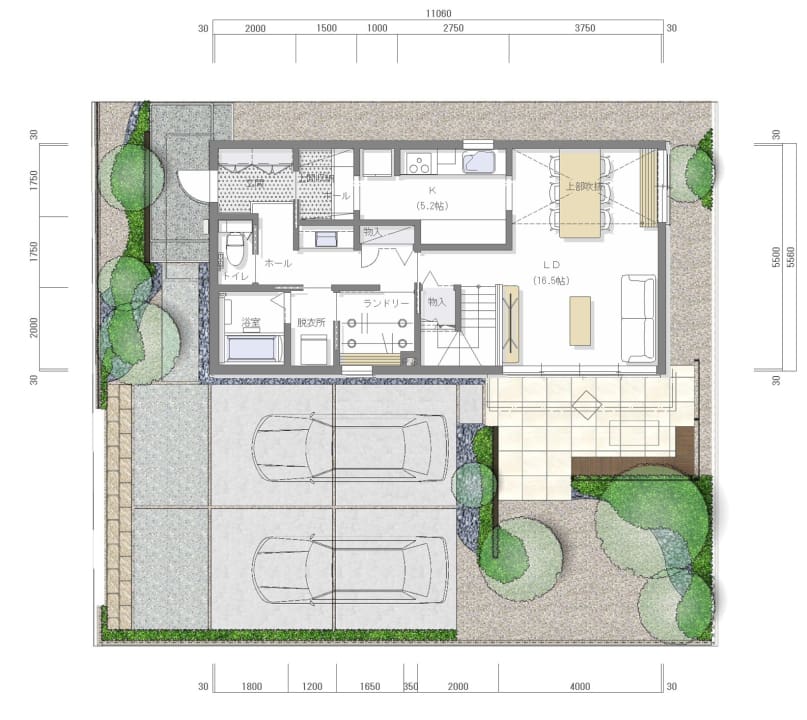 ※パースに描かれている樹木は、成長した数年後のイメージです。