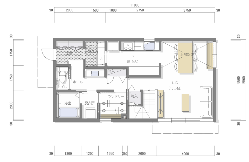 このプランの場合、外構工事費用、屋外給排水工事費用、地盤改良費用などで、約650万円が別途必要です。