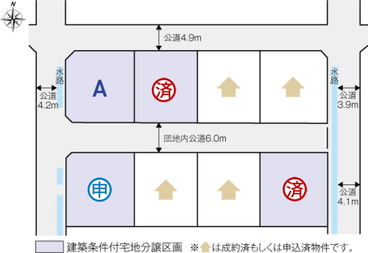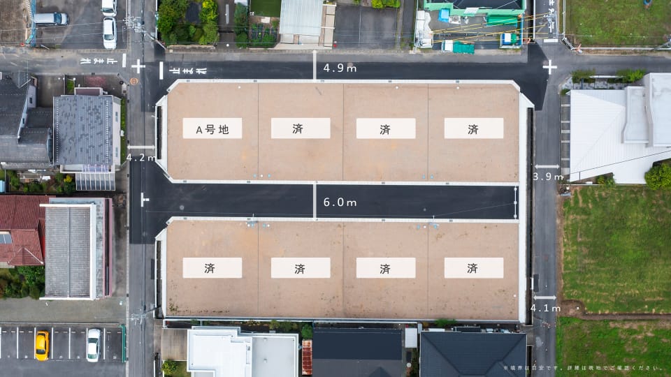 全8区画、土地面積55坪以上、自由度の高いプランニングが可能な正方形の整形地です。穏やかな日常を大切に過ごせるこの場所で、ご家族の新しい生活を始めてみませんか。