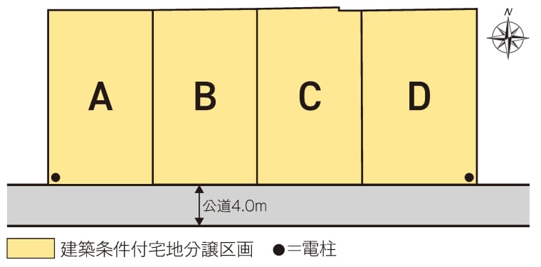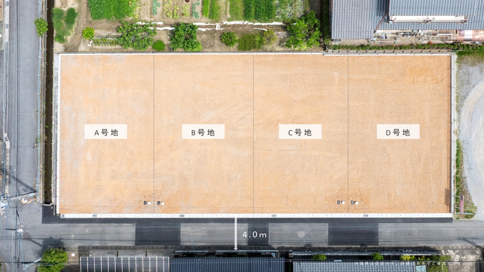全4区画南向きの分譲地。陽当たりもよく、明るく開放的な住まいが叶います。