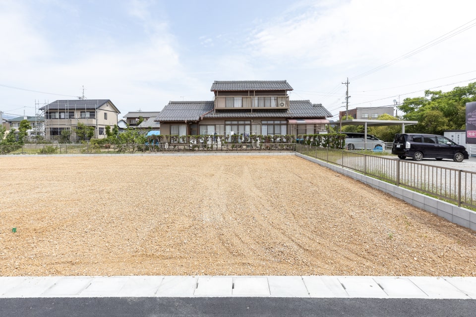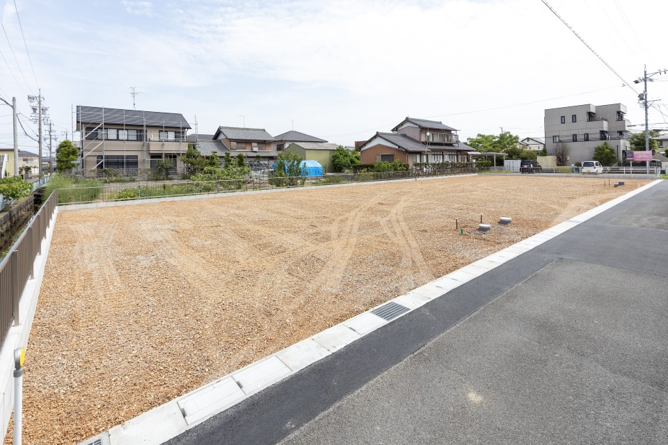 【B号地】土地面積184.65㎡(約55.85坪)。アクアウォーク大垣やイオンタウン大垣も徒歩15分圏内にあり、ご家族の毎日の生活を便利にしてくれます。/現地写真(2025年6月撮影)