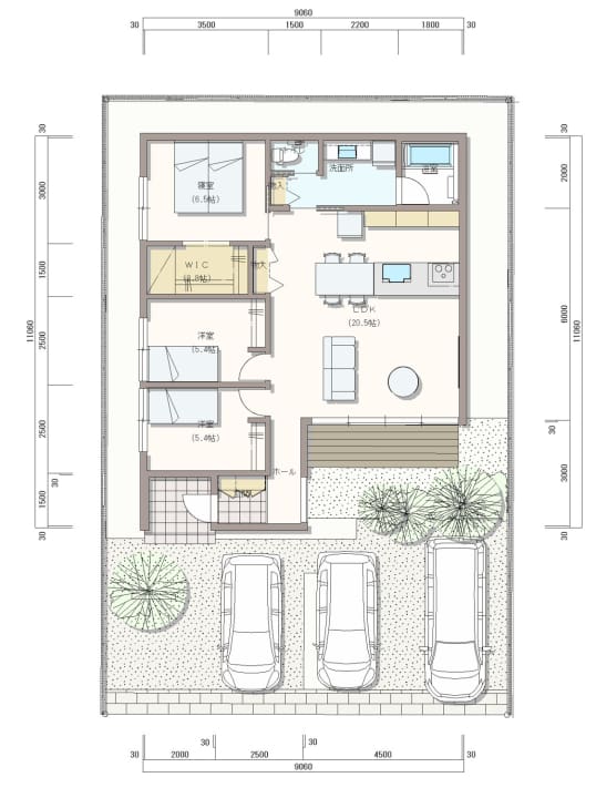 ※パースに描かれている樹木は、成長した数年後のイメージです。