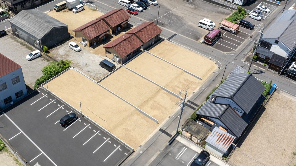 奥行きのある整形地で空間を有効に活用した建物が建てやすく、住まいづくりの選択肢が広がります。/航空写真(2025年7月撮影)