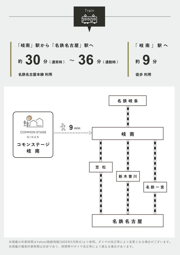 「岐南」駅から「名鉄名古屋」駅まで約30~36分の快適アクセス。