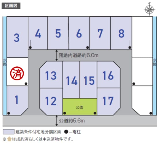 分譲地内の道路は幅員が約6mあり、日々の駐車や車のすれ違いもスムーズです。