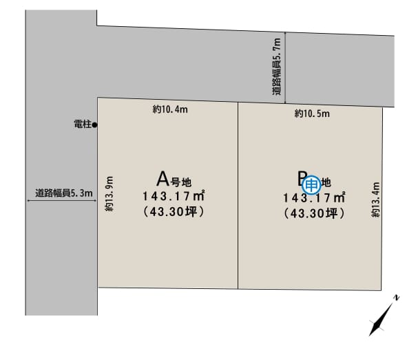 約43坪の整形地、2区画の分譲地。東静岡駅まで徒歩12分。