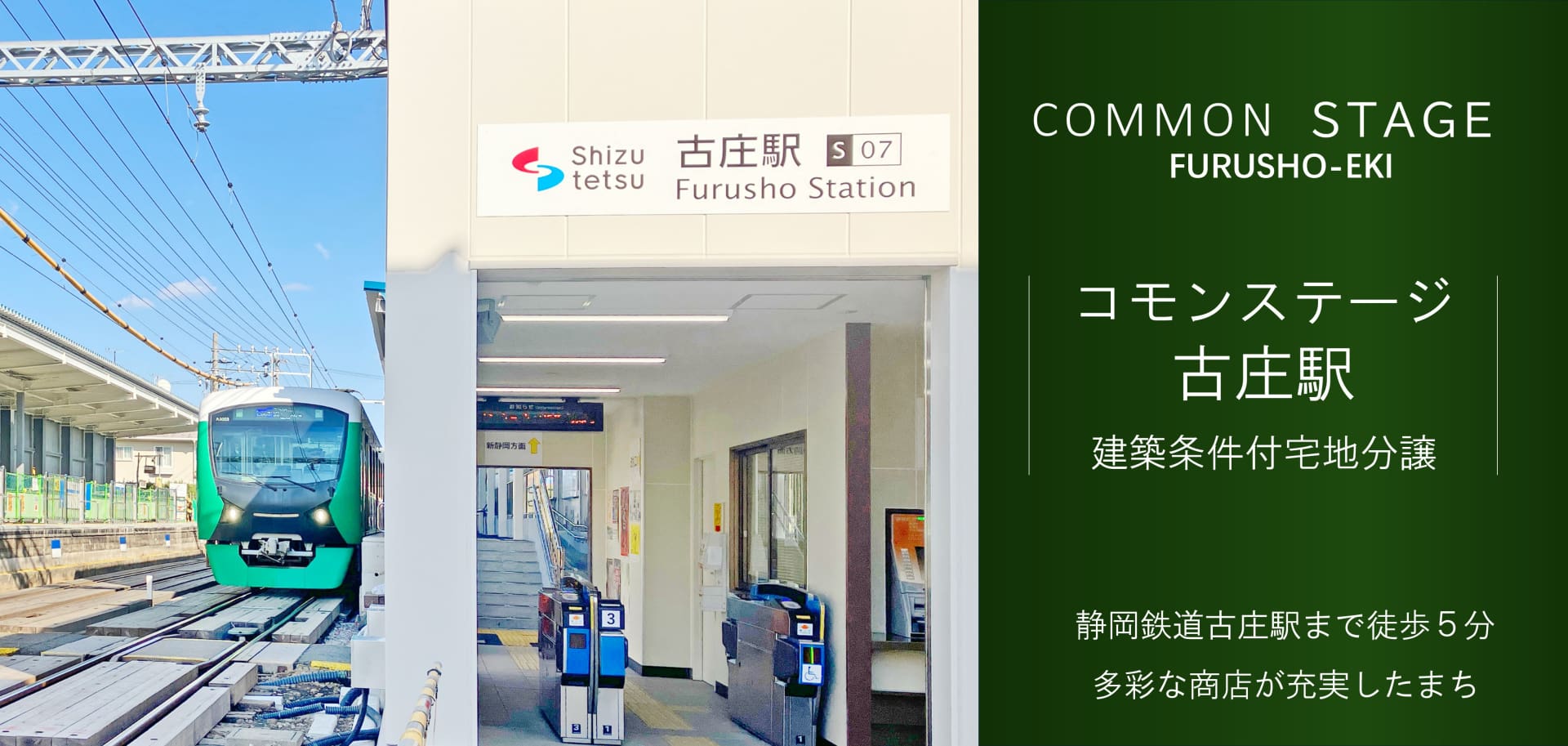 静岡鉄道「古庄」駅まで350m(徒歩5分)。フードマーケット マム 古庄店まで徒歩10分、MARK IS静岡まで徒歩19分と生活環境が整った分譲地です。