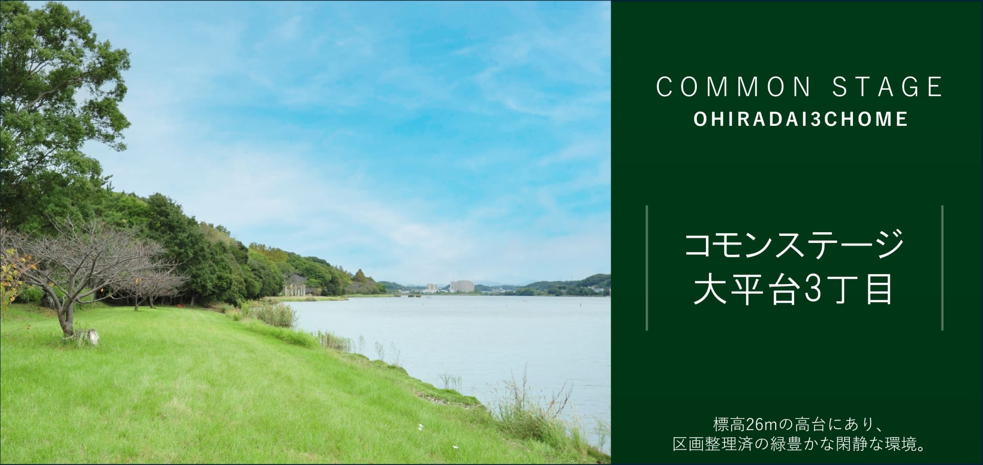 区画整理済の緑豊かな閑静な環境。標高26mの高台にあり、水害の危険性が少ない全2区画の分譲地です。
