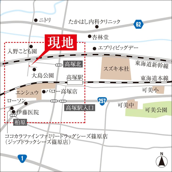 JR浜松駅まで1駅で6分で運行しており、通勤・通学・お買い物等、生活利便性の良い分譲地です。