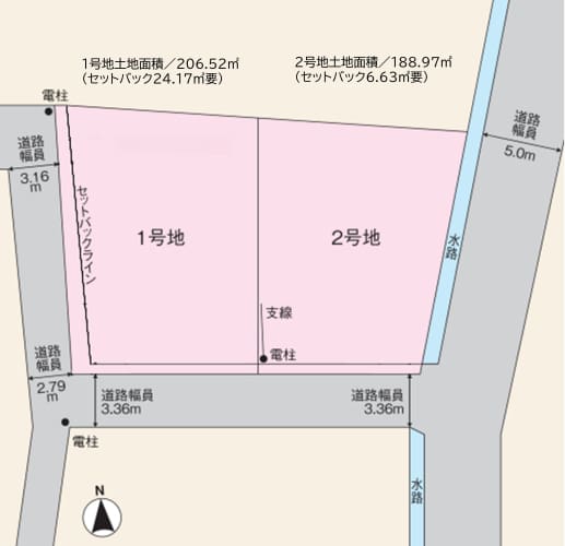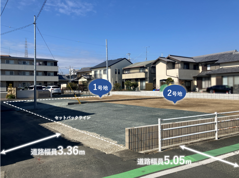遠州鉄道上島駅まで徒歩5分~6分の閑静な住宅地。2区画とも南面道路の分譲地です。