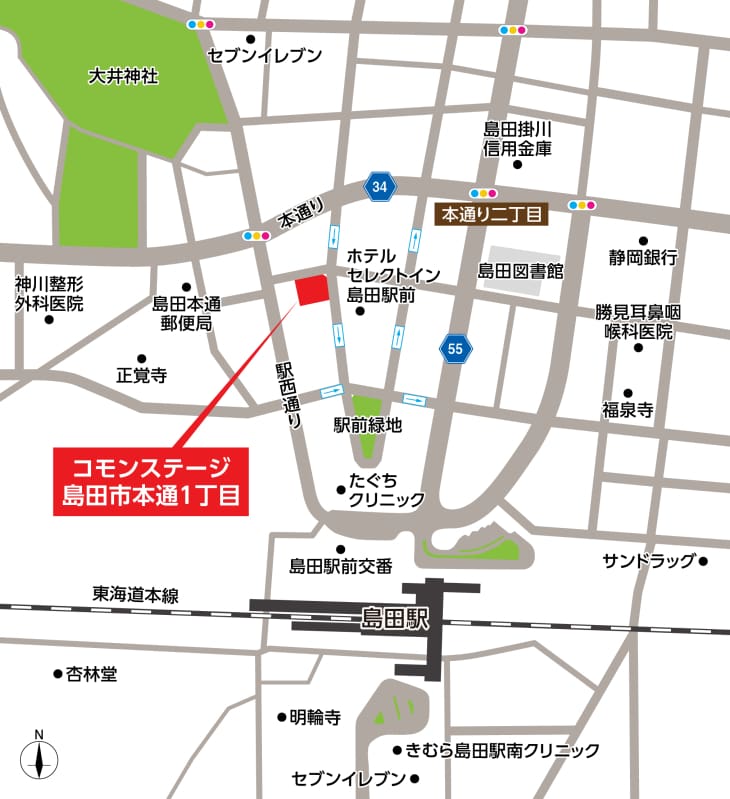 「ホテルセレクトイン島田駅前」を目印にお越しください。