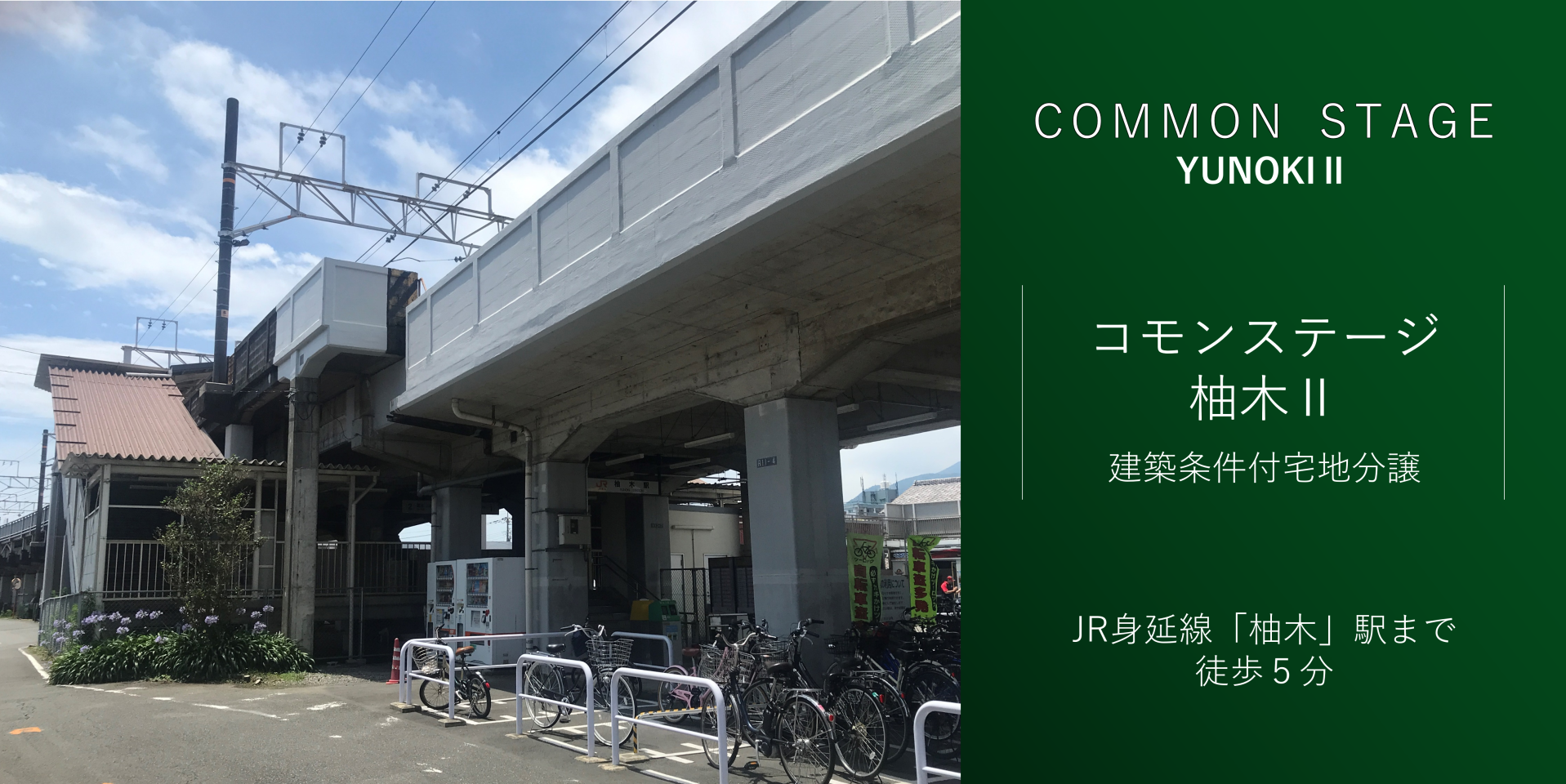 JR柚木駅まで徒歩5分(最長)。分譲地周辺はスーパーや飲食店、病院などが揃った閑静な住宅地です。
