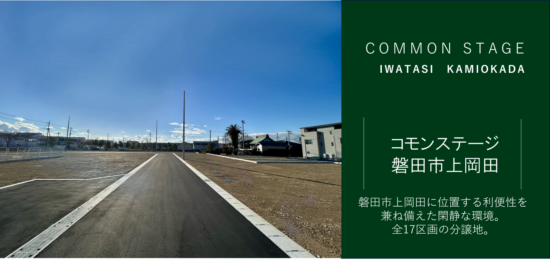 磐田市上岡田に位置する利便性を兼ね備えた閑静な環境。全17区画の分譲地。