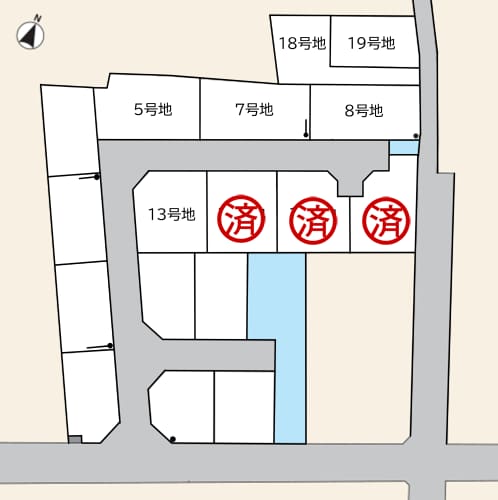 50坪超の17区画。前面道路は幅員約4.0m~7.8mです。