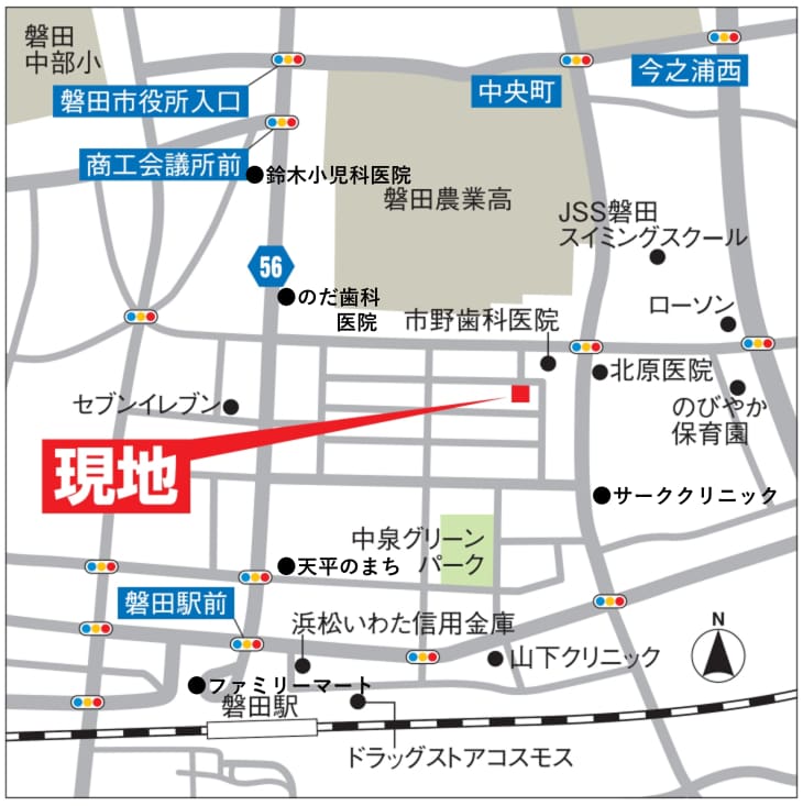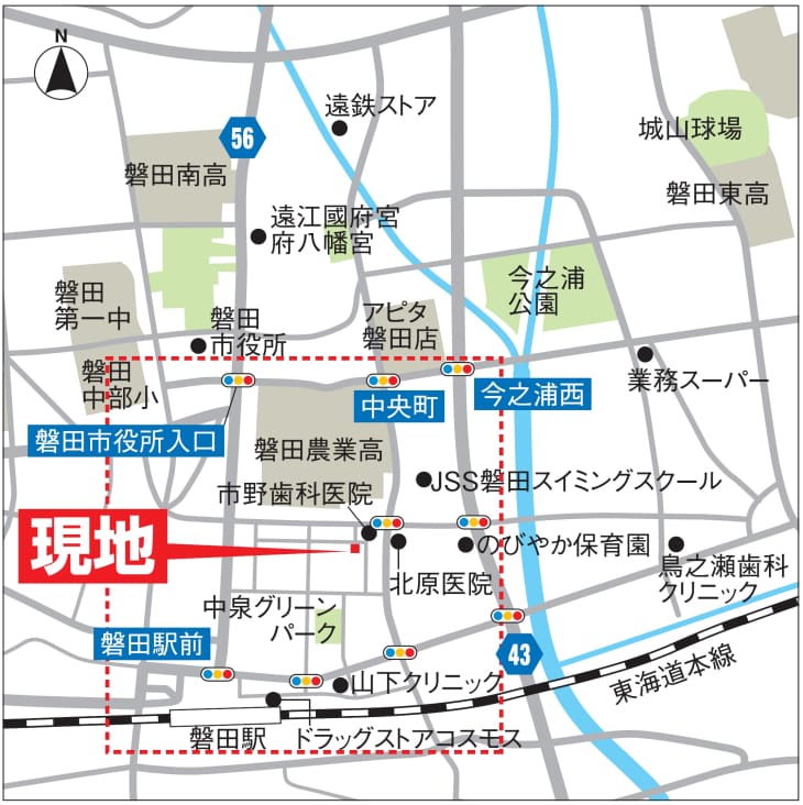 現地から650m。 徒歩9分。(最長)JR東海道本線磐田駅北口