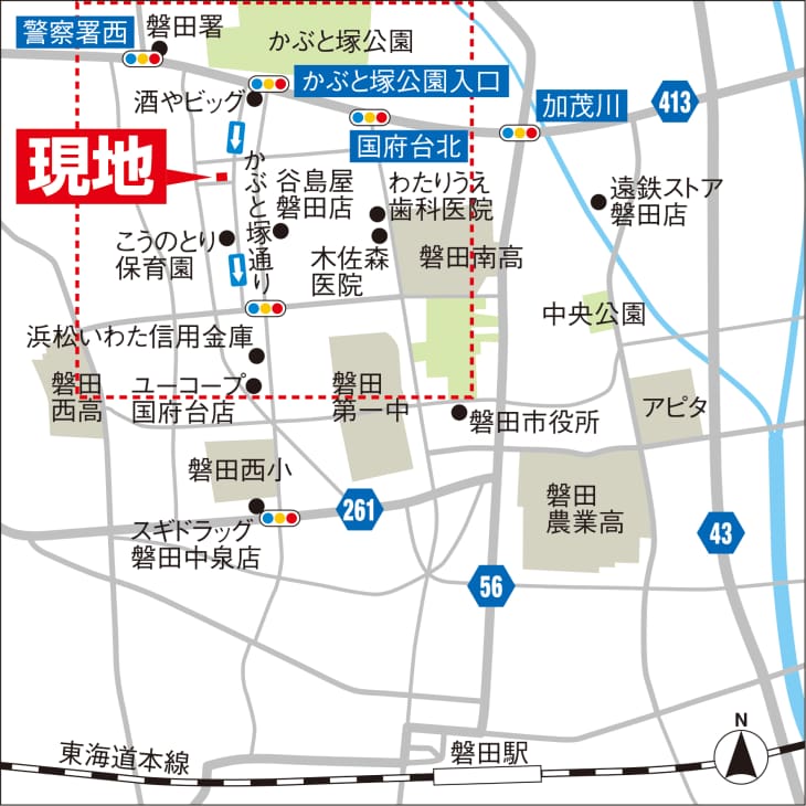 地盤の良い磐田原台地に位置する南面道路の分譲地です。
