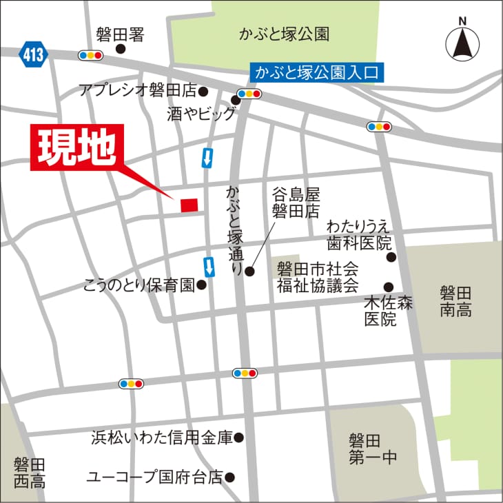 現地から350m。 徒歩5分。(最長)かぶと塚公園