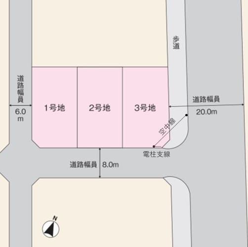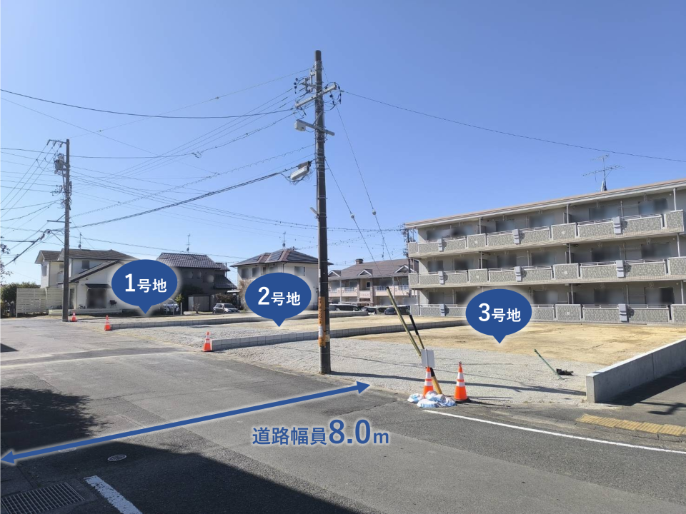 高台にある全3区画の閑静な分譲地