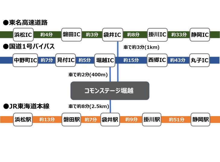 袋井IC・袋井バイパス・袋井駅までのアクセスが良く通勤・通学に便利な分譲地。