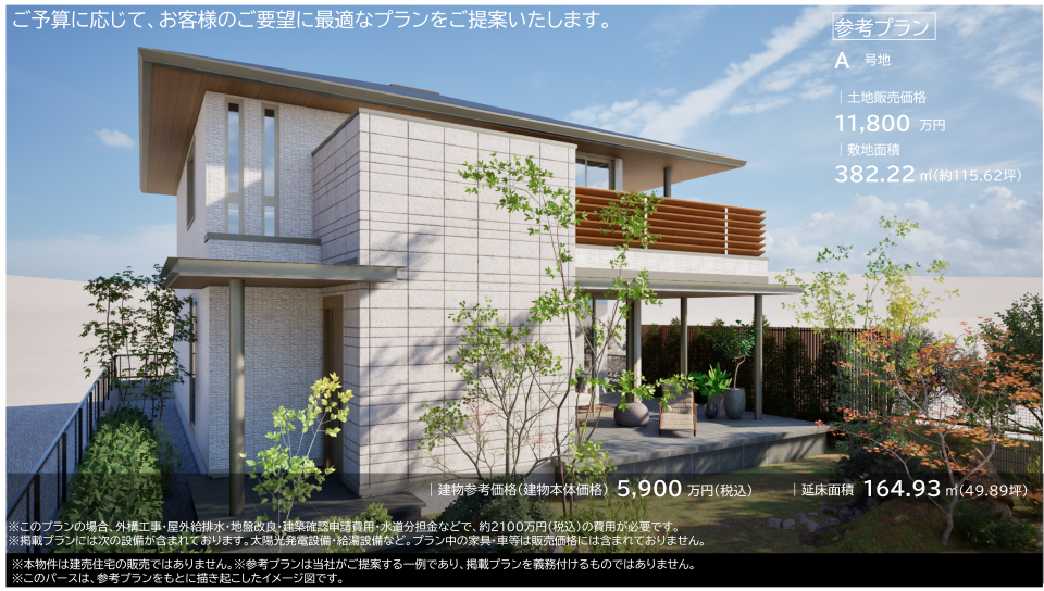 ※A号地にて注文住宅を建てた場合の参考プランです。