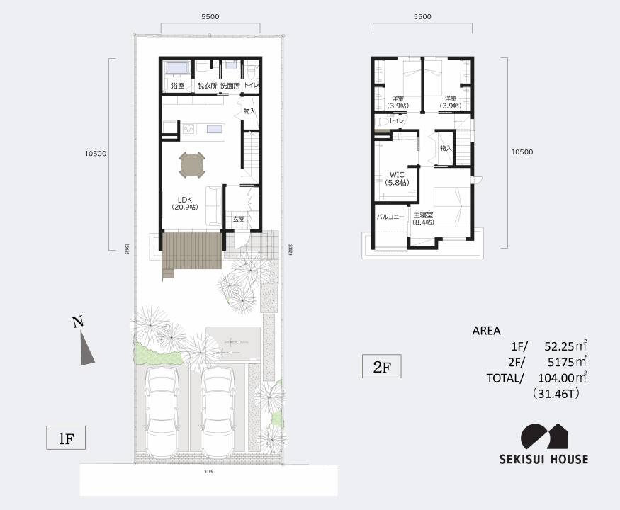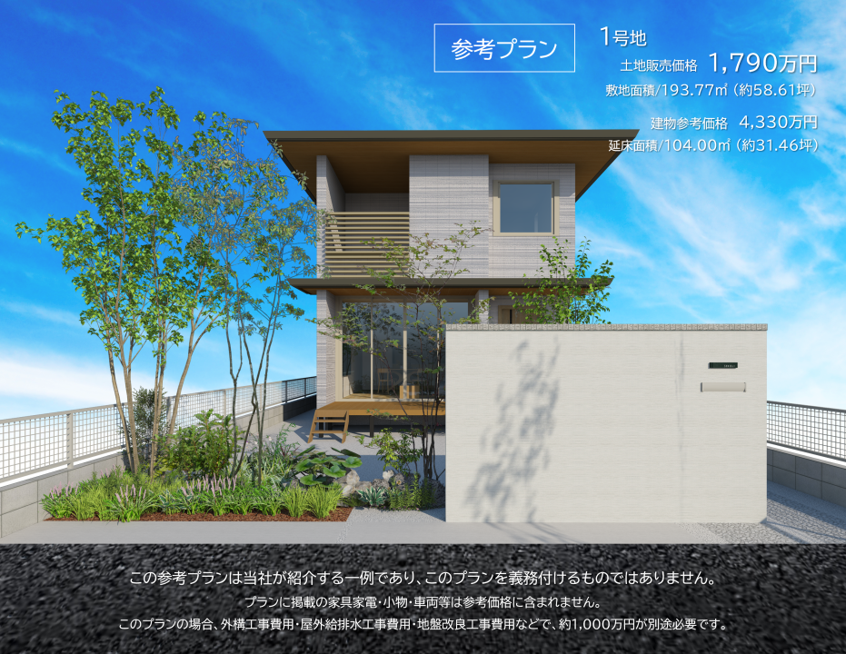 1号地に注文住宅を建てた場合の参考プラン※建売ではありません