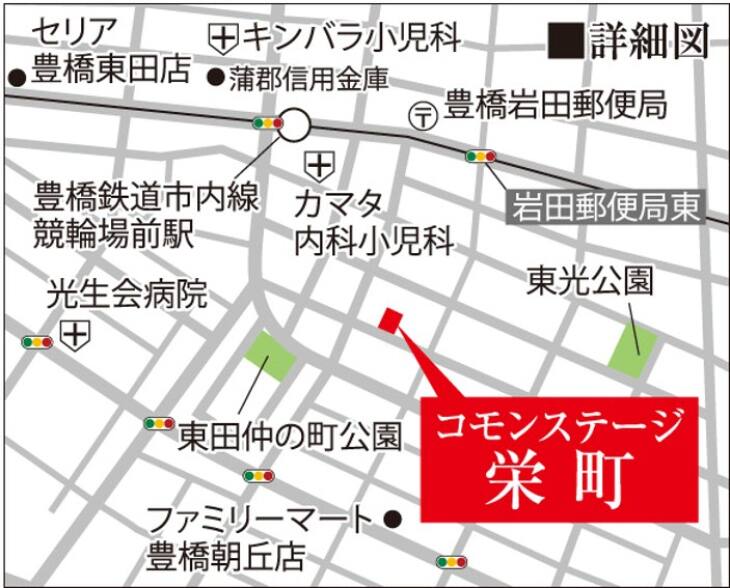 豊橋市栄町 あと1区画。豊橋鉄道市内線「競輪場前」駅まで徒歩4分。徒歩10分圏内に3つの公園があり環境の良い分譲地です。