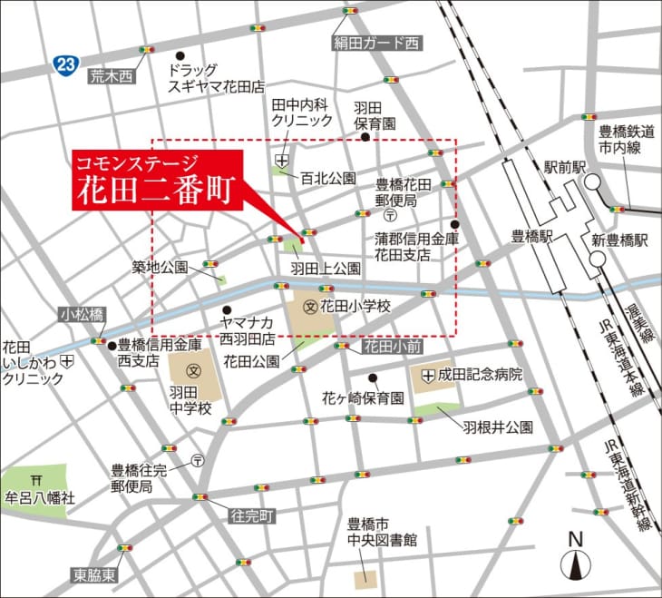 豊橋駅まで徒歩10分、小学校まで徒歩3分。豊橋市指定の『歩いて暮らせるまち』区域にある、全1区画の分譲地。新幹線を利用して名古屋・東京方面へ通勤する方にもおすすめです。
